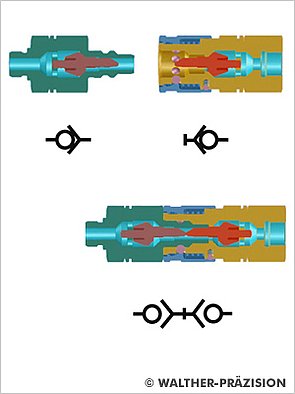 - Series CT: Clean break couplings in the low pressure range for minimal leakage when uncoupling and virtually air entrapment-free coupling